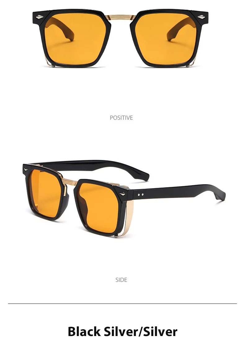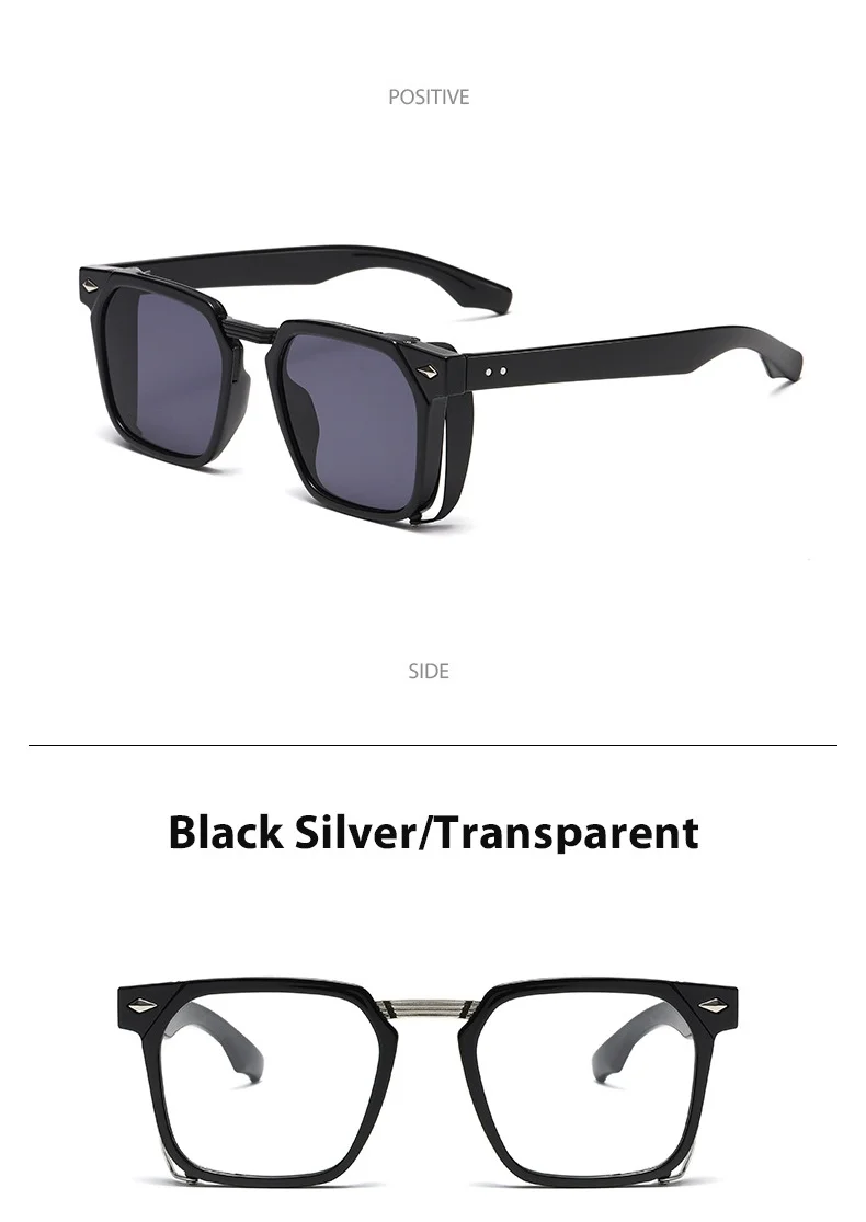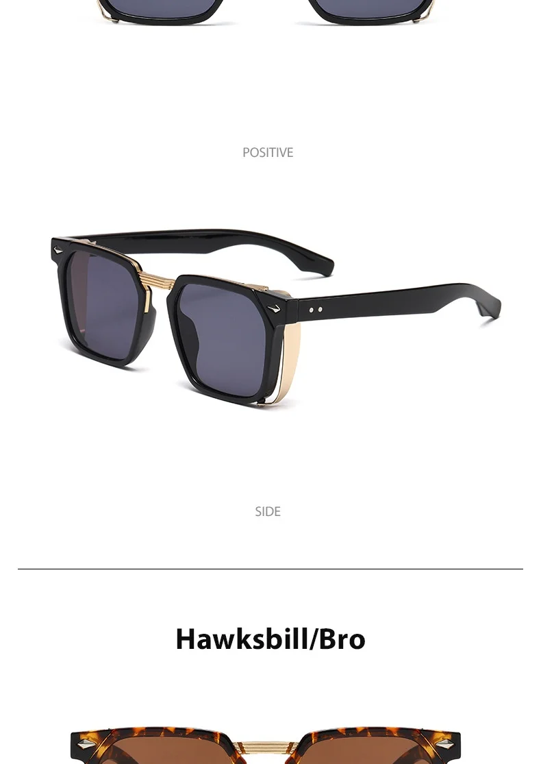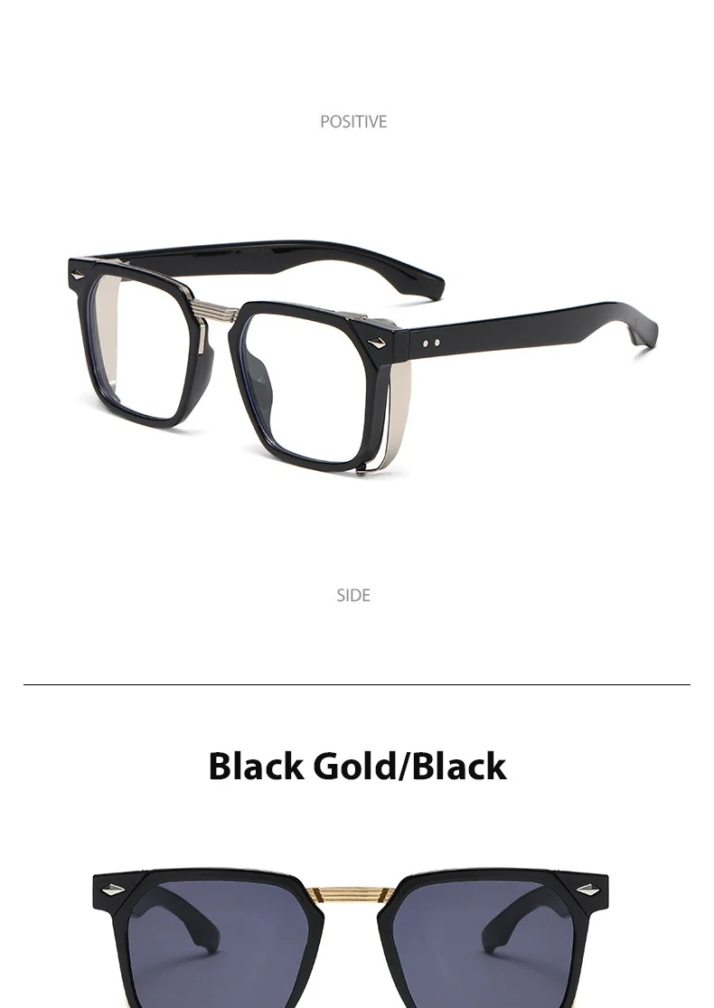 Vintage Rivets Steampunk Square Sunglasses Uv400 Unisex Luxury Brand Designer Shades Retro Y2k Fashion Eye Protection Eyewear